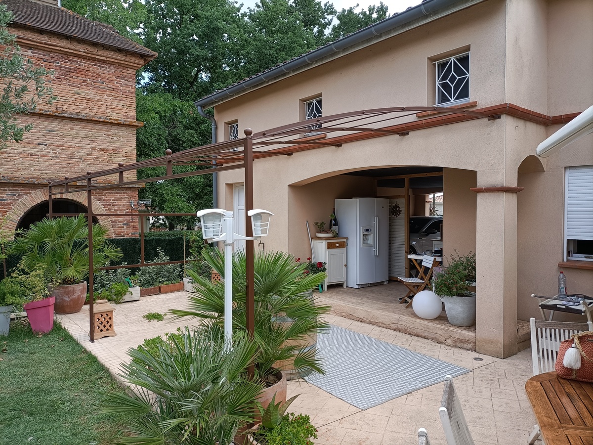 À Villemur-sur-Tarn, sur une construction ancienne, réalisation d’une pergola traditionnelle cintrée de 5 x 3 mètres. La structure est en acier thermolaqué finition RAL MARS 2525. La couverture en canisse a été installée par le client.