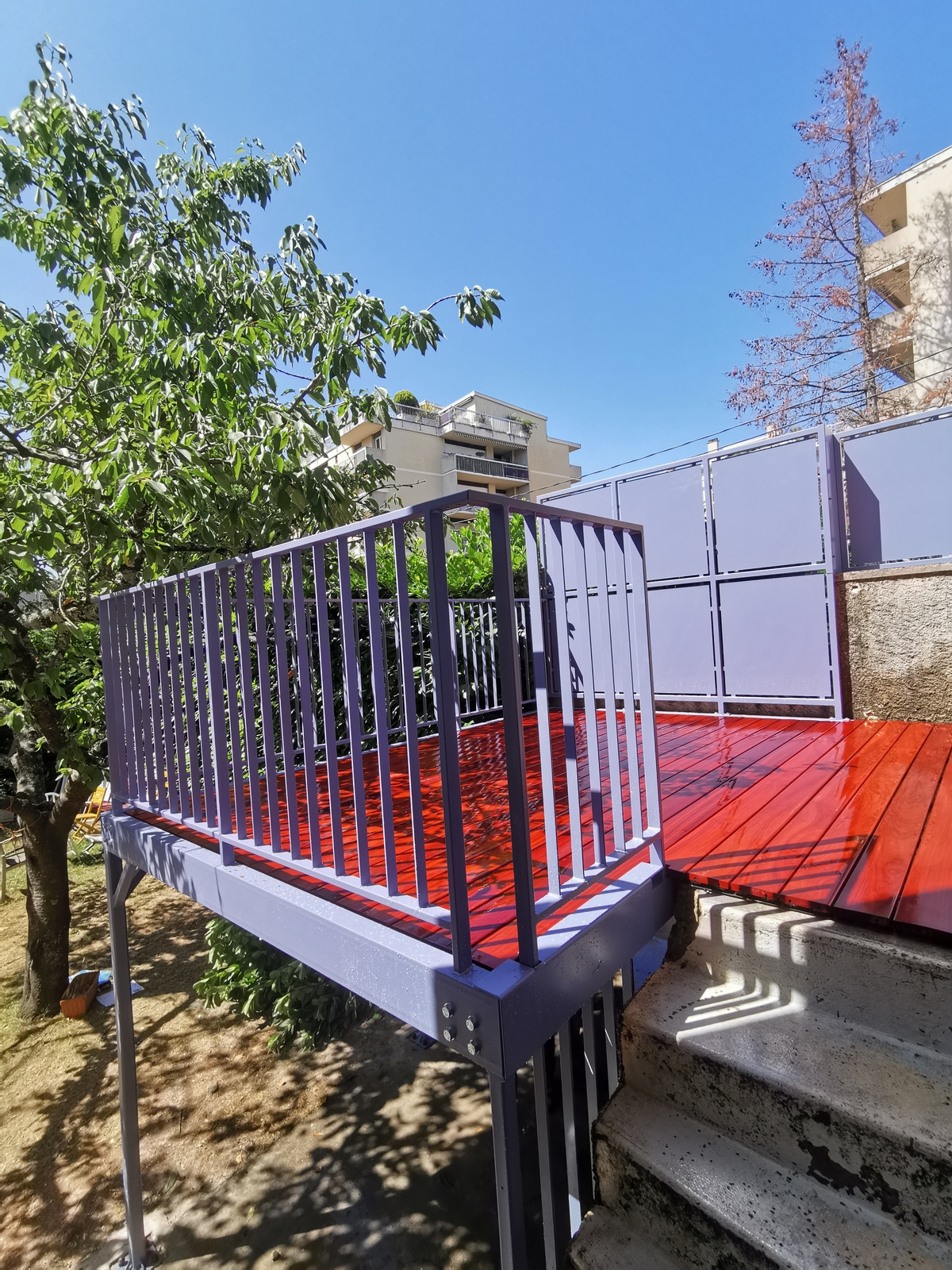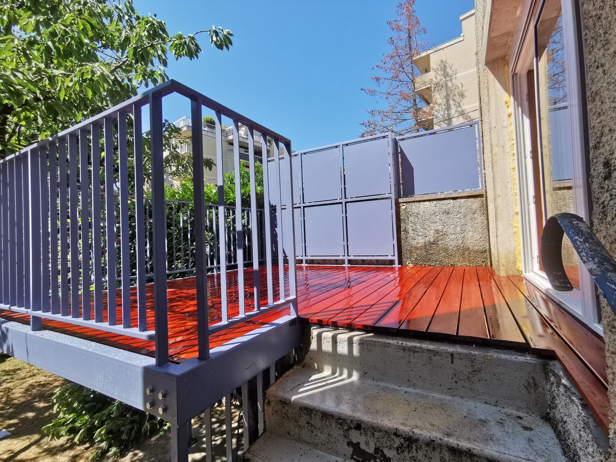 Agrandissement de terrasse – Acier thermolaqué & bois exotique Padouk